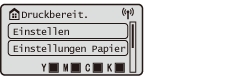 Wählen Sie <Einstellen>, um den <Menü>-Bildschirm aufzurufen. Viele der Geräteeinstellungen, wie z. B. Verwaltungseinstellungen, Anzeigeeinstellungen und Netzwerkeinstellungen, werden konfiguriert, nachdem Sie zunächst <Einstellen> ausgewählt haben.