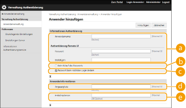 [Anwendername:] / [Passwort:] / [Bestätigen:]