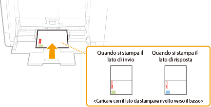 Questa sezione descrive come caricare le cartoline con l'orientamento corretto, nonché le procedure da seguire prima di caricare le cartoline. Per una descrizione della procedura generale di caricamento delle cartoline nel vassoio multiuso, vedere Metodo base per il caricamento della carta. |