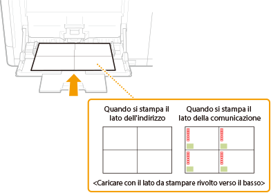 Come mostrato nell'immagine seguente, inserire la cartolina con il lato di stampa rivolto verso il basso.