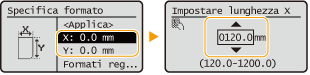 | Selezionare <X> o <Y> per specificare la lunghezza di ciascun lato usando i tasti numerici o  /  . |