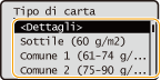 Per controllare le impostazioni dettagliate per un tipo di carta, selezionare <Dettagli>