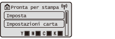 Selezionare <Imposta> per visualizzare la schermata <Menu>. Molte delle impostazioni della macchina, come le impostazioni di gestione, le impostazioni di visualizzazione e le impostazioni di rete, vengono configurate selezionando prima <Imposta>.