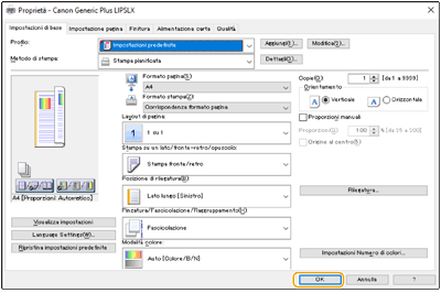 Specificare le impostazioni di stampa secondo le necessità e fare clic su [OK].