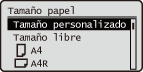 Si necesita cambiar frecuentemente el papel que se va a cargar, ajuste en <Tamaño libre>; esto reducirá el número de pasos necesarios para cambiar el ajuste. También puede visualizar un mensaje de error cuando la configuración del controlador de la impresora sea significativamente diferente al tamaño del papel cargado.