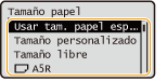 Si necesita cambiar frecuentemente el papel que se va a cargar, ajuste en <Tamaño libre>; esto reducirá el número de pasos necesarios para cambiar el ajuste. También puede visualizar un mensaje de error cuando la configuración del controlador de la impresora sea significativamente diferente al tamaño del papel cargado. <Dif. tam. pap. para origen pap. tam. lib>