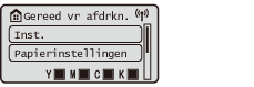 Selecteer <Instellen> om het <Menu>-scherm weer te geven. Veel van de instellingen van het apparaat, zoals de beheerinstellingen, weergave-instellingen en netwerkinstellingen, worden geconfigureerd door eerst <Instellen> te selecteren.