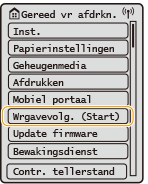 Selecteer <Wrgavevolg. (Start)> om het scherm <Home> aan te passen door de knoppen te verplaatsen. Het scherm aanpassenU kunt instellingen voor de schermweergave wijzigen, zoals welk scherm verschijnt zodra de machine wordt aangezet en of de melding verschijnt hoeveel papier en toner er nog is. <Weergave-instellingen> |