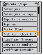 Selecione <Ord. Apr. (Ecrã Pr.)> para personalizar o ecrã <Início> reorganizando os botões. Personalizar o visor