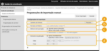 Pode especificar manualmente os dados que pretende importar e atualizar as informações de utilizadores.