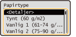 Hvis du vil kontrollere de detaljerte innstillingene for en papirtype, velger du <Detaljer>