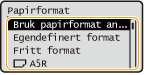 Hvis du ofte trenger å endre papiret som skal legges i, angi <Fritt format>; dette reduserer antall trinn som kreves for å endre innstillingen hver gang. Du kan også vise en feilmelding når innstillingen i skriverdriveren er betydelig forskjellig fra størrelsen på det ilagte papiret.