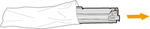 Se till att hålla trumpatronen med båda händerna och dra försiktigt ut den horisontellt. Om du drar ut trumpatronen snabbt kan trumpatronen skadas.