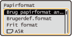 Angiv formatet på det papir, der er lagt i papirskuffen.