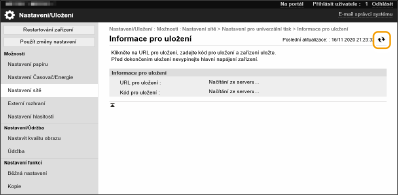 Klikněte na odkaz URL zobrazený v části [URL pro uložení].