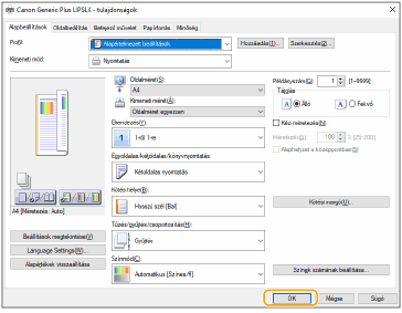 Szükség szerint váltson a lapok között, és adja meg a kívánt nyomtatási beállításokat.
