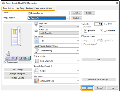 Norādiet nepieciešamos drukāšanas iestatījumus un noklikšķiniet uz [OK].