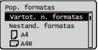 Užregistravus dažnai naudojamus popieriaus formatus kaip mygtukus <S1>–<S5>, juos galima iškviesti pasirinkus <Įregistravimo dydžiai>.Nestandartinio formato (pasirinktinio formato) popieriaus registravimas