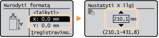 Pasirinkite <X> arba <Y>, kad nurodytumėte kiekvienos kraštinės ilgį naudodami skaičių mygtukus arba  /  .