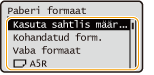 Määrake paberisahtlisse asetatud paberi formaat.