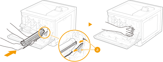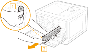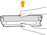 Hoidke trumlikassetti kindlasti mõlema käega ja tõmmake see ettevaatlikult horisontaalselt välja. Trumlikasseti kiire väljatõmbamine võib trummikassetti kahjustada.