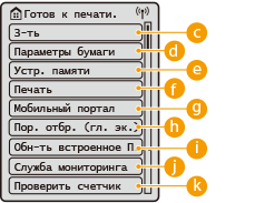 Нажав эту кнопку, можно настроить параметры <Параметры функции>, <Предпочтения> и многие другие параметры аппарата.