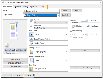 ציין את הגדרות ההדפסה כנדרש, ולחץ על [OK].