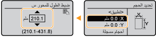 حدد <X> أو <Y> لتحديد طول كل جانب باستخدام المفاتيح الرقمية أو  /  .