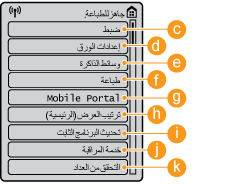 <إعدادات الوظائف>, <التفضيلات>, ويبدأ العديد من إعدادات الجهاز الأخرى من هذا الزر.