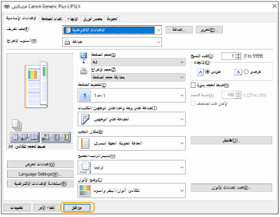 حدد إعدادات الطباعة حسب الضرورة، ثم انقر فوق [موافق].