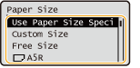 اگر اغلب نیاز دارید کاغذ بارگذاری شده را تغییر دهید، روی <Free Size> تنظیم کنید؛ اینکار هر بار تعداد مراحل مورد نیاز برای تغییر تنظیمات را کاهش میدهد. همینطور میتوانید زمانی که تنظیم در درایور چاپ بهطور قابل ملاحظهای با اندازه کاغذ بارگذاری شده تفاوت دارد یک پیام خطا نشان دهید.