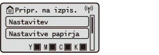 Izberite <Nastavitev>, da prikažete zaslon <Meni>. Številne nastavitve naprave, kot so nastavitve za upravljanje, nastavitve prikaza in omrežne nastavitve, konfigurirate tako, da najprej izberete <Nastavitev>.