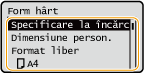 Prin înregistrarea formatelor de hârtie utilizate frecvent în butoanele de la <S1> până la <S5>, acestea pot fi preluate prin selectarea opţiunii <Dimens. înregistrate>.Înregistrarea unui format liber de hârtie (format personalizat)