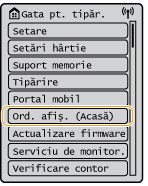 Selectați <Ord. afiş. (Acasă)> pentru a personaliza ecranul <Acasă> prin rearanjarea butoanelor. Personalizarea ecranului