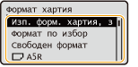 Ако често се налага да сменяте хартията, която ще се зарежда, настройте на <Своб.>; това ще намали броя на необходимите стъпки за промяна на настройката всеки път. Обаче отбележете, че тази настройка позволява на принтера да извършва печат, дори ако има несъответствие между настройката на типа на хартията в драйвера на принтера и типа на хартията,който е действително зареден в устройството.
