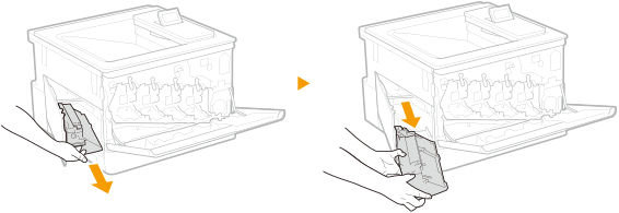 Під час заміни контейнера для використаного тонера процедура також відображається на екрані. Переглядайте інформацію, що відображається на екрані, під час виконання зазначеної нижче процедури.