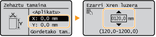 Hautatu <X> edo <Y> alde bakoitzeko luzera zehazteko zenbaki-teklak edo