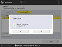 Si premeu la tecla <Cancel·lar> mentre s'estan processant els treballs d'impressió, es mostra la pantalla per seleccionar cancel·lar immediatament o cancel·lar els treballs d'impressió un cop finalitzat el treball d'impressió actual. Seleccioneu l'adequat segons la vostra aplicació.