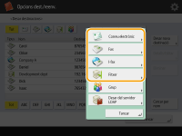 ![]() | Podeu desar el número de fax d'un destinatari o una adreça de correu electrònic que es pugui utilitzar quan envieu originals llegits a la llibreta d'adreces. També podeu desar una destinació d'I-fax, una ubicació de carpeta de servidor de fitxers (adreça IP i camí) i l'emmagatzematge (Espai avançat) d'una impressora multifunció Canon* com a destinació a la llibreta d'adreces. * Només disponible per a la sèrie imageRUNNER ADVANCE |