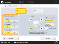 Podeu configurar l'equip perquè imprimeixi obligatòriament en els documents impresos o copiats informació de l'usuari com ara el nom de l'usuari que ha iniciat sessió. Aquesta funció us permet identificar qui ha imprès cada document simplement comprovant la informació impresa, fet que pot dissuadir de fer còpies no autoritzades. Per configurar aquestes opcions calen privilegis d'administrador o d'administrador de dispositius (DeviceAdmin).