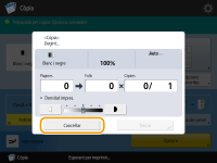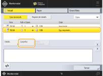 Si premeu (Aturar) al tauler de control quan els treballs de còpia estan en espera, tots els treballs de còpia queden en pausa i apareixen el missatge <<Aturar>Seleccioneu el treball de còpia que voleu cancel·lar.> i la llista de treballs de còpia. Podeu seleccionar un treball de còpia de la llista i cancel·lar el treball prement <Cancel·lar>. Si voleu reprendre la còpia, premeu <Reprendre còpia>. |