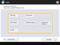 Podeu seleccionar diversos tipus de qualitat d'imatge alhora. No obstant això, <Colors vius> i <Colors suaus> no es poden seleccionar alhora, i <Aclarir imatge>, <Enfosquir imatge> i <Reproducció tons clars> tampoc no es poden seleccionar alhora.