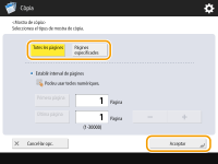 Per copiar pàgines concretes, seleccioneu <Pàgines especificades>. Introduïu les pàgines prement <Pàgina inicial> o <Pàgina final>.