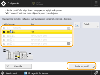 Netegeu el vidre de còpia abans d'ajustar els valors. Neteja del vidre de còpia Utilitzeu les condicions següents per imprimir el full de guia. Si el full de guia no s'imprimeix correctament, l'ajust no serà prou precís. Mida del paper: A3 o 11" x 17" Acabat: No estucat, Estucat a 1 cara o Estucat a 2 cares Tipus: Normal Gramatge del paper: Paper en el qual es pot realitzar una impressió a dues cares i és de 80 g/m2 o més pesat (es recomana paper de 200 g/m2 o més) Si una vora de la pàgina de prova es talla o plega de manera correcta, o si la imatge no s'imprimeix correctament a la pàgina de prova, pot ser que durant el procés de lectura aparegui aquest missatge: <Col·loqueu correctament la pàgina de prova al vidre.> L'ajust no es pot fer correctament en alguns tipus de paper, com ara el paper gofrat amb superfície rugosa o el paper de color. Si l'ajust no es duu a terme correctament quan <Usar escàner> està seleccionat, seleccioneu <No usar lector>. |