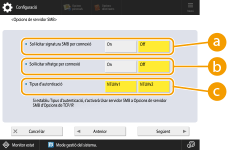 Si establiu <Mitjançant SMB> i establiu l'opció <Gestió d'autenticació> en <On>