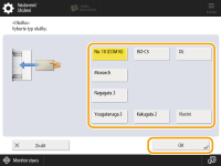 2 | Vyberte typ obálek. ![]() Pro uložení vlastní velikosti obálky stiskněte <Vlastní> <Další> a stiskněte <X> nebo <Y> pro určení strany, poté použijte numerické klávesy pro zadání délky určené strany. |
