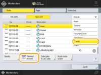 (Monitor stavu), otevře se obrazovka Monitor stavu, ze které můžete kontrolovat historii používání jednotlivých funkcí, jako je kopírování, tisk, odesílání e-mailů, odesílání/přijímání I-faxů atd. Z této obrazovky také můžete tisknout historii používání jednotlivých funkcí.![]() |