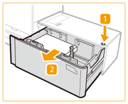 Pokud vyberete jednotku „POD Deck Lite XL-A“, když v ní není papír, nebo v jednotce „POD Deck Lite XL-A“ dojde papír během tiskové úlohy, zobrazí se na displeji dotykového panelu obrazovka s výzvou k vložení papíru. Podle níže uvedeného postupu vložte papír do jednotky „POD Deck Lite XL-A“.