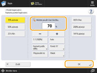 | | Zvětšení nebo zmenšení lze provést zadáním poměru kopírování (%). Vertikální a horizontální poměry lze zadávat zvlášť. Zvětšení nebo zmenšení kopií zadáním poměru kopírování |