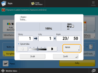 <Nátisk> se zobrazí, když zhotovujete více kopií v režimu Třídit, Přesah nebo Sešít. <Nátisk> lze používat, když je ke stroji připojena jednotka „Staple Finisher-AG“, „Booklet Finisher-AG“ nebo „High Capacity Stacker-J“. |